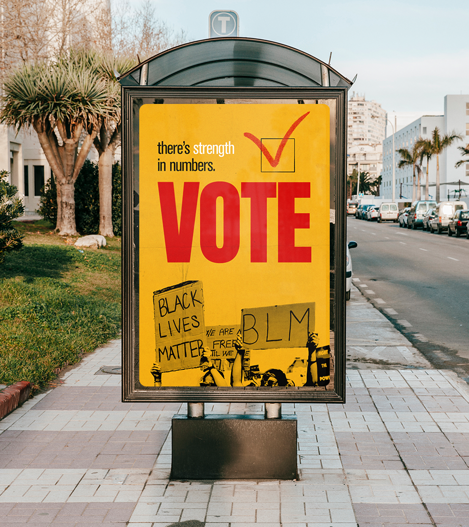 Sony Music partnered with Sid Lee to create social and OOH campaigns encouraging voter participation ahead of the 2020 election. Developed during the protests against police brutality, this project was one of the most meaningful of my career. I aimed for a handmade, grassroots feel—channeling the visual language of hip-hop to connect with a passionate music audience.